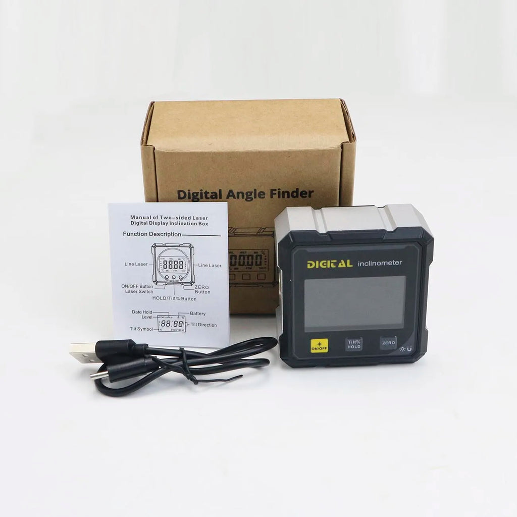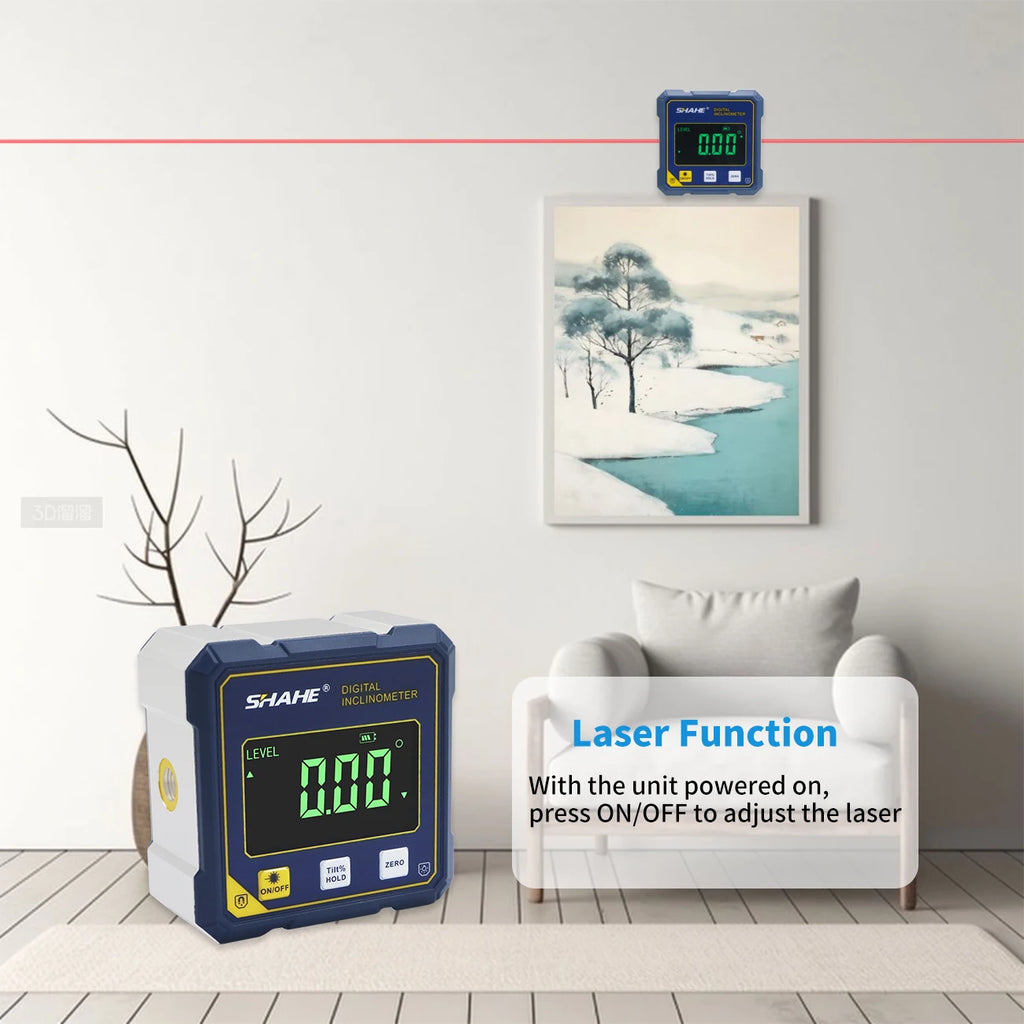 Medidor de Ângulo Digital SHAHE com Laser Duplo – Inclinômetro Magnético 4 Lados Recarregável para Nivelamento